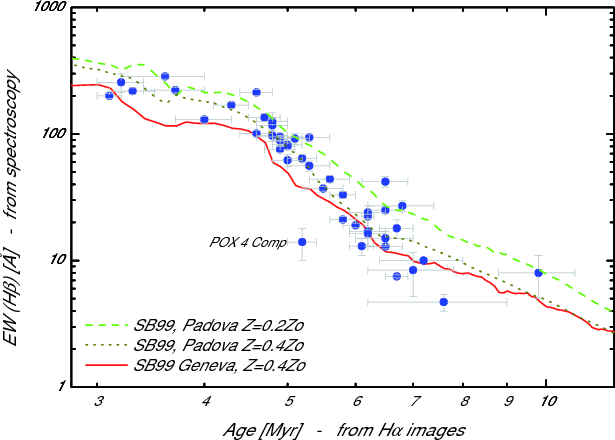On the other hand, the knowledge of the chemical composition of galaxies, in particular of dwarf galaxies, is vital to the understanding of their evolution, star formation history, stellar nucleosynthesis, the importance of gas inflow and outflow, and the enrichment of the intergalactic medium. Indeed, metallicity is a key ingredient in modelling galaxy properties, because it determines the UV, optical and NIR colours at a given age (i.e., Leitherer et al. 1999), nucleosynthetic yields (e.g., Woosley & Weaver 1995), the dust-to-gas ratio (e.g., Hirashita et al. 2001), the shape of the interstellar extinction curve (e.g., Piovan et al. 2006), or even the WR properties (Crowther 2007).