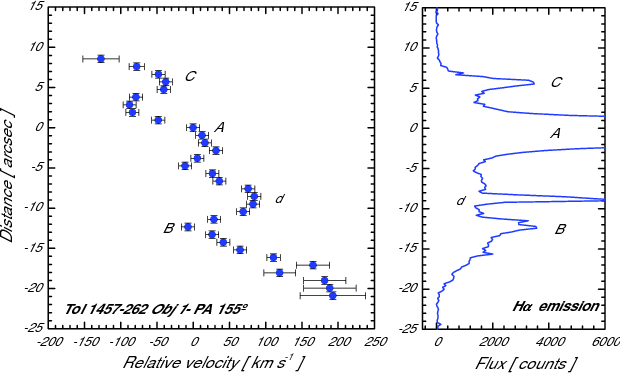 for knots analyzed in Tol 1457-262 (regions A, B, and C)