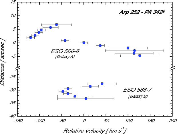 and Arp 252 (galaxy A, ESO 566-8, and galaxy B,