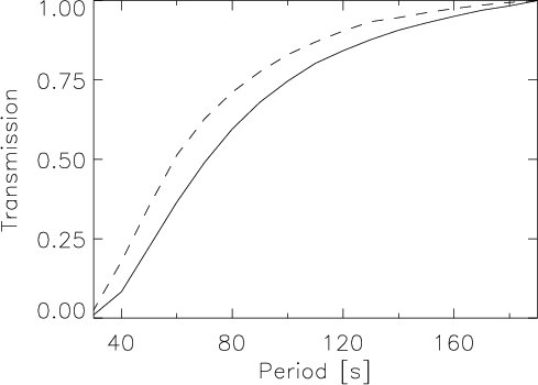 s) were corrected for the transmission of the solar atmosphere, which reduces the signal from short-period waves.