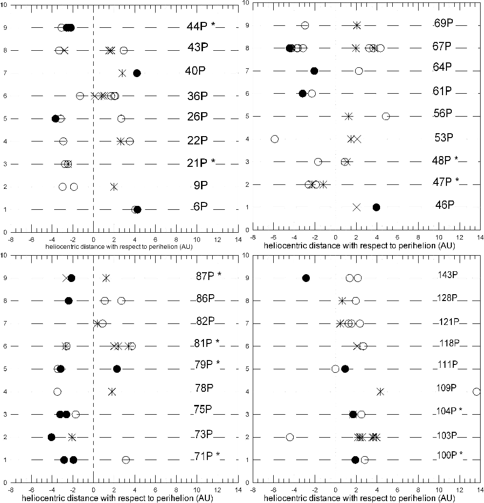 when volatile sublimation is expected to be low. Recently, an observative program was started to search for distant activity in SPCs and to investigate how frequent this phenomenon is within the family (Mazzotta Epifani et al. 2007, 2008).