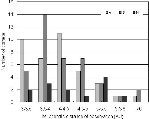 them when at heliocentric distances greater than 3-4 AU (Lowry