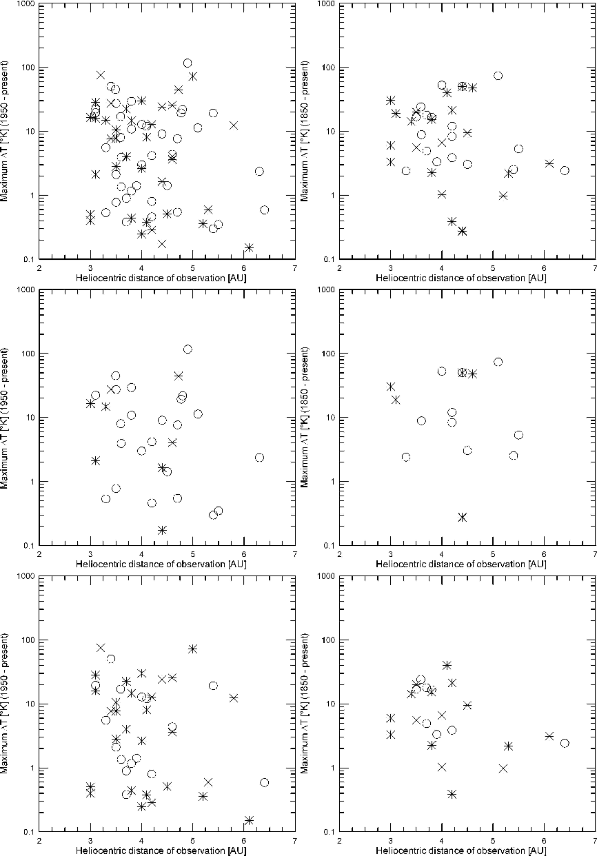 activity with semi-major axis a. No apparent appreciable link of a recent (or secular) increase of the perihelion temperature