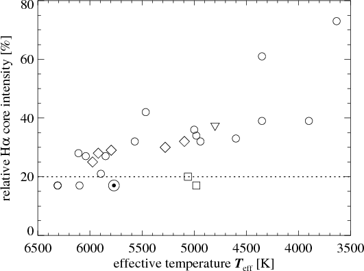 cooler dwarfs also display chromospheric infilling of the H