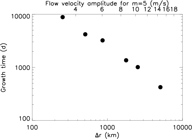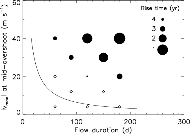an external downflow do not exceed about 50 m s -1 and 100 days, respectively, and that the lateral extension of the flow is smaller than about