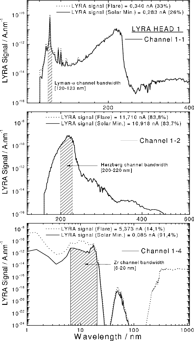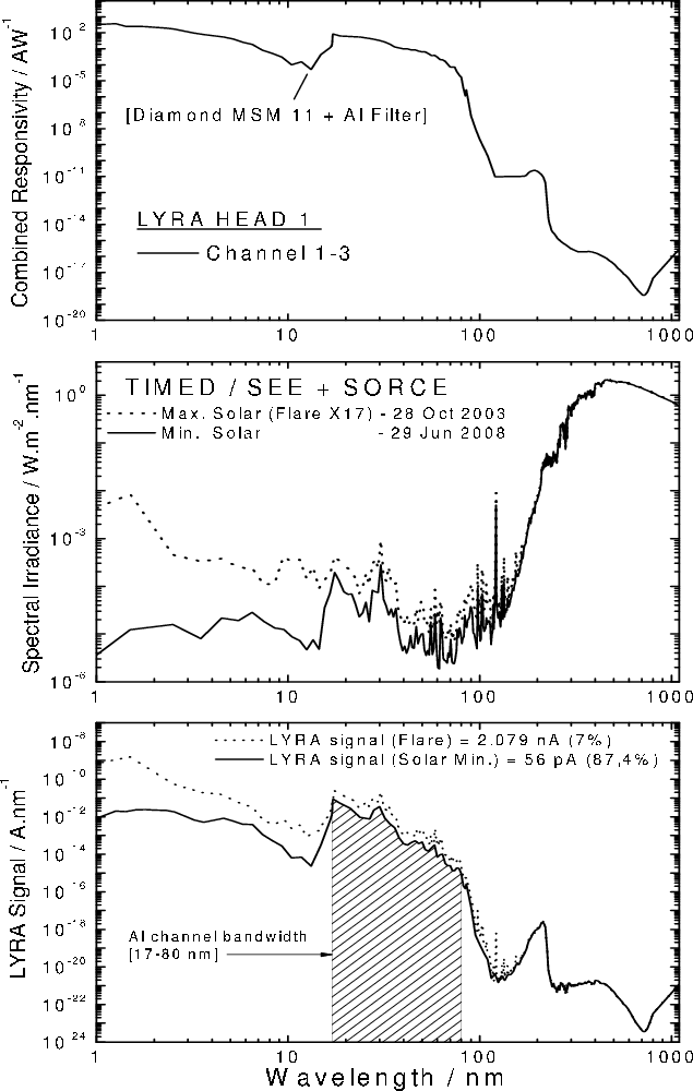 is reported in Table 4 with the expected output signals at solar minimum (spectrum of 29 June 2008).