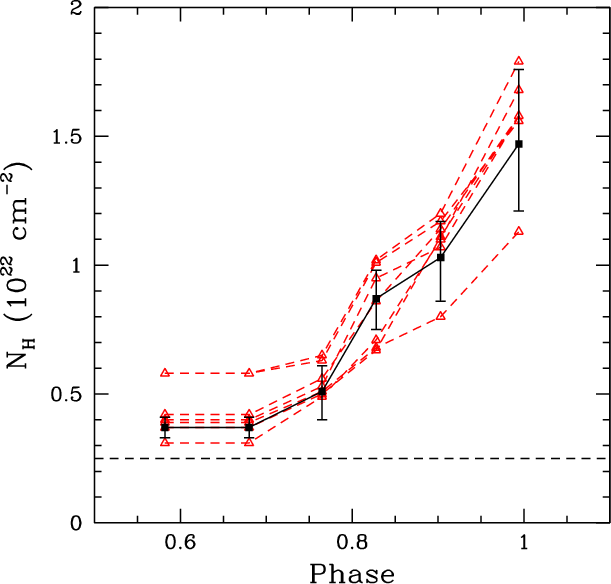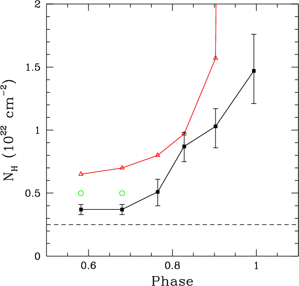 observed and the expected absorptions at phases near periastron, we