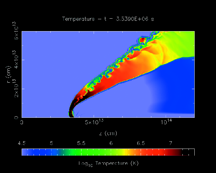 hydrodynamical simulations of the wind collision that we performed.
