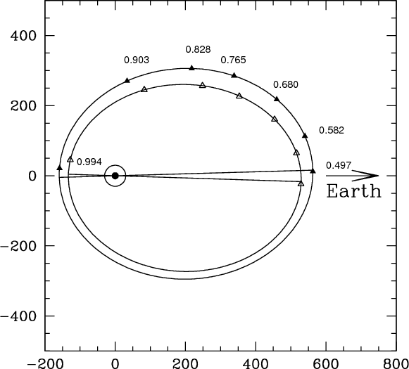 apastron to near periastron.