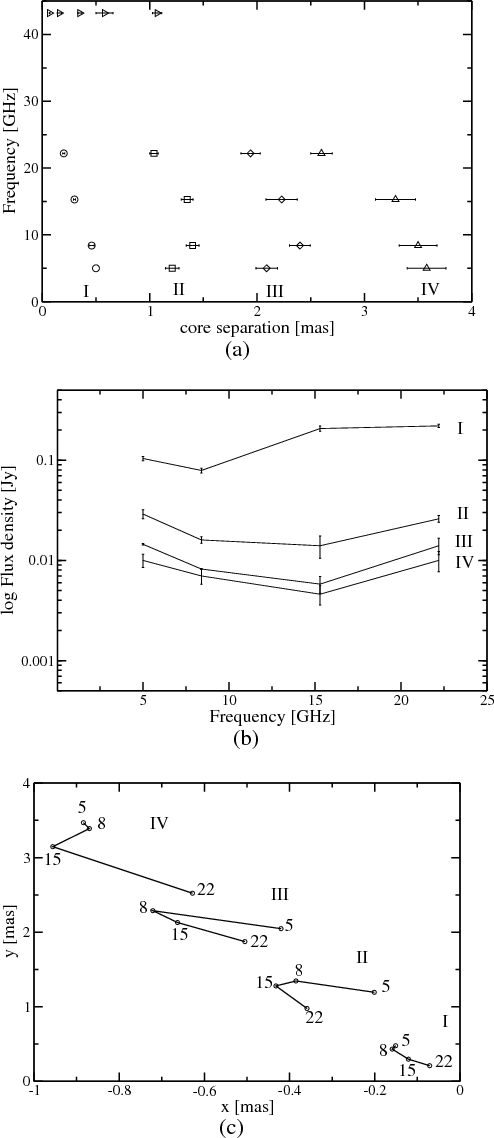 the VLBA at 5 different frequencies (5-43 GHz) between 1992.73 and