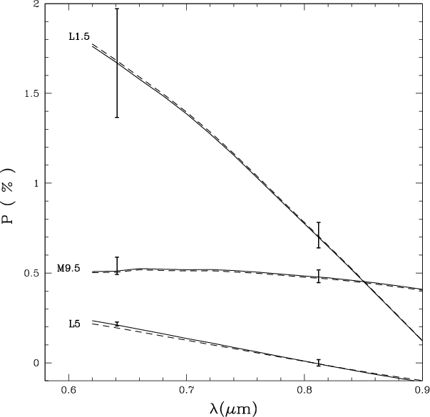 polarization in L dwarfs in the optical I band.