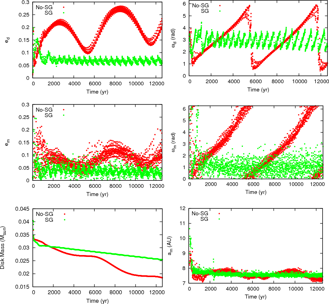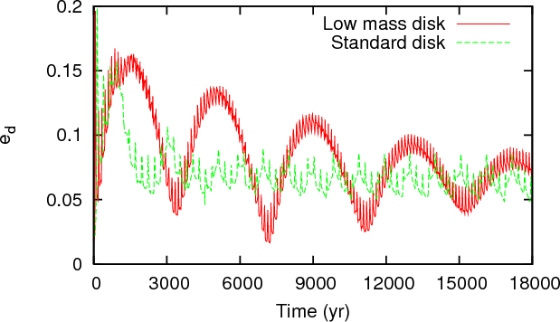 in simulations without self-gravitation. The disk eccentricity
