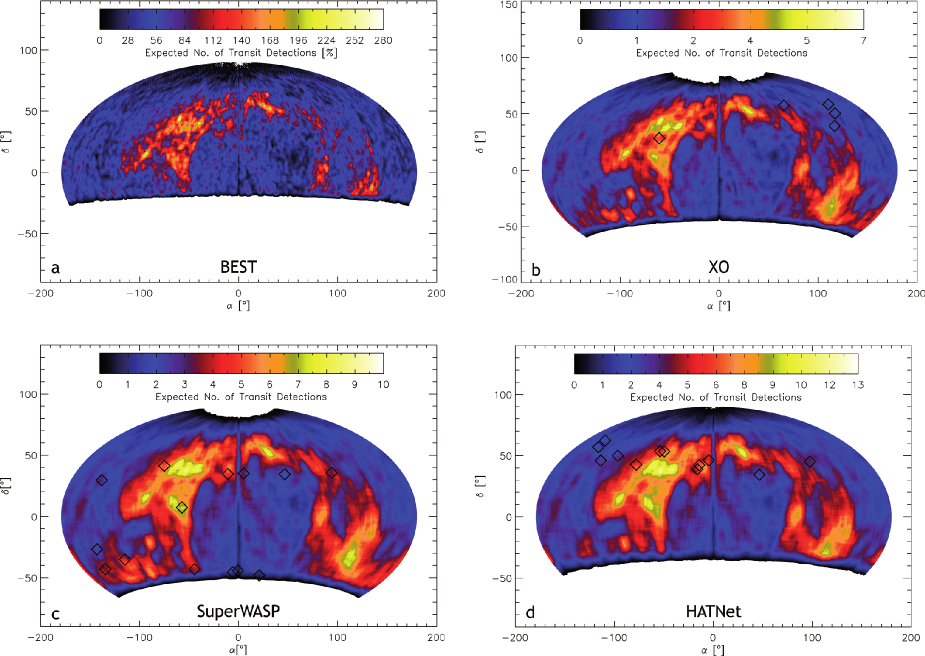 map, those for XO, SuperWASP, and HATNet show FsOV with up to 10