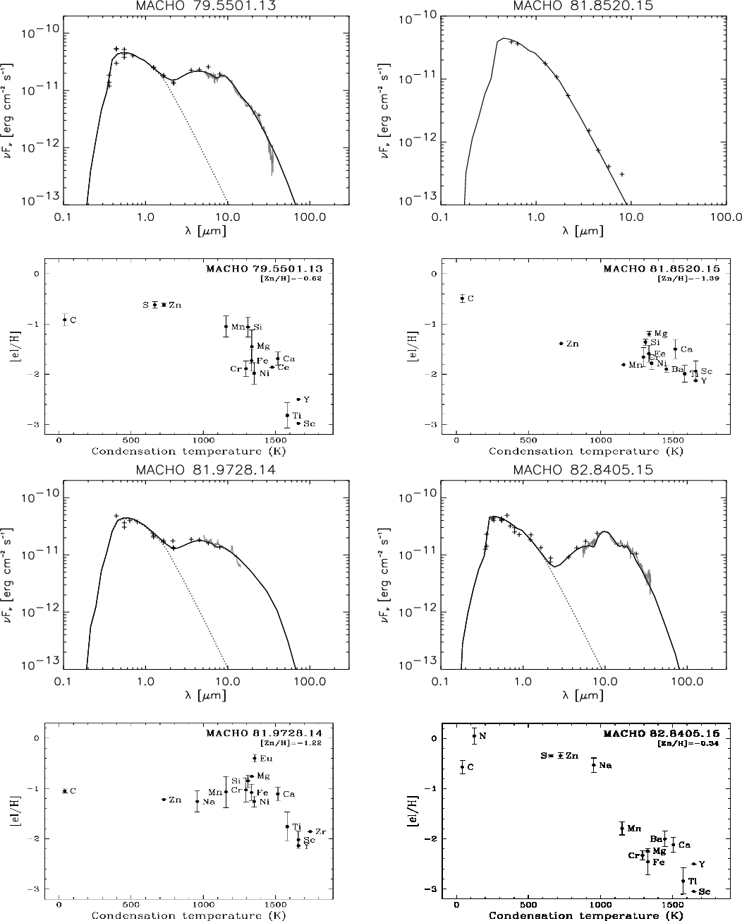intrinsically the most metal poor object of the sample. For MACHO 81.8520.15 we only found a small dust excess at 8
