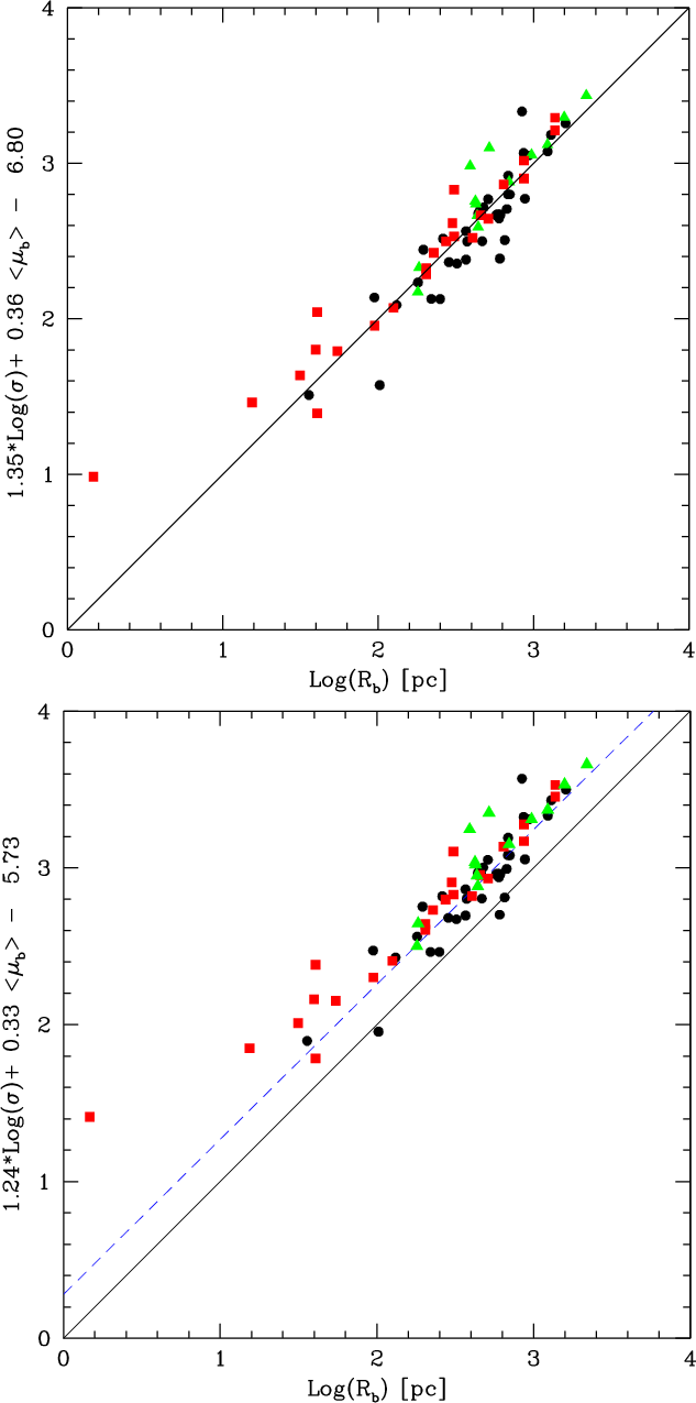 that surface brightness, break radius and velocity dispersion of the