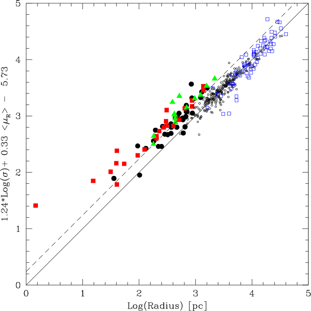 are also consistent (same slope) with those of the fundamental plane