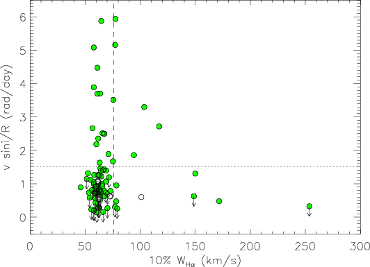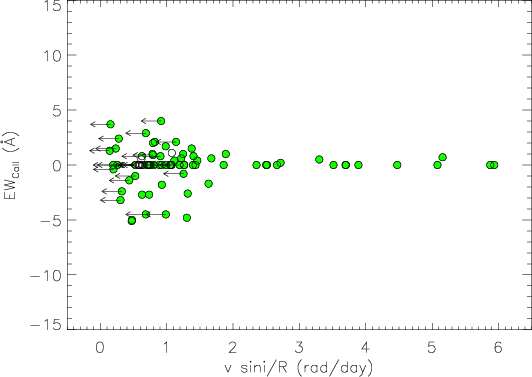 suggesting that all stars are in a saturated regime limit. The critical velocity is probably below our