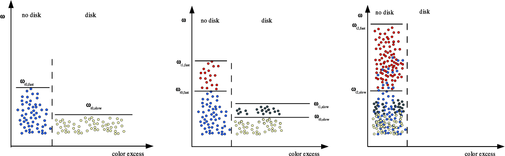 has been found. While a spread in the rotation rates is seen for stars with no circumstellar disk (