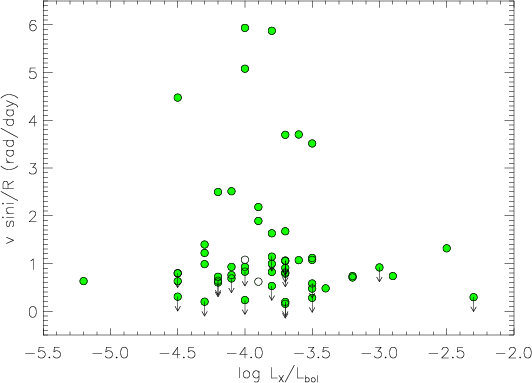 and accretion is observed when other indicators are used. The X-ray coronal activity level (
