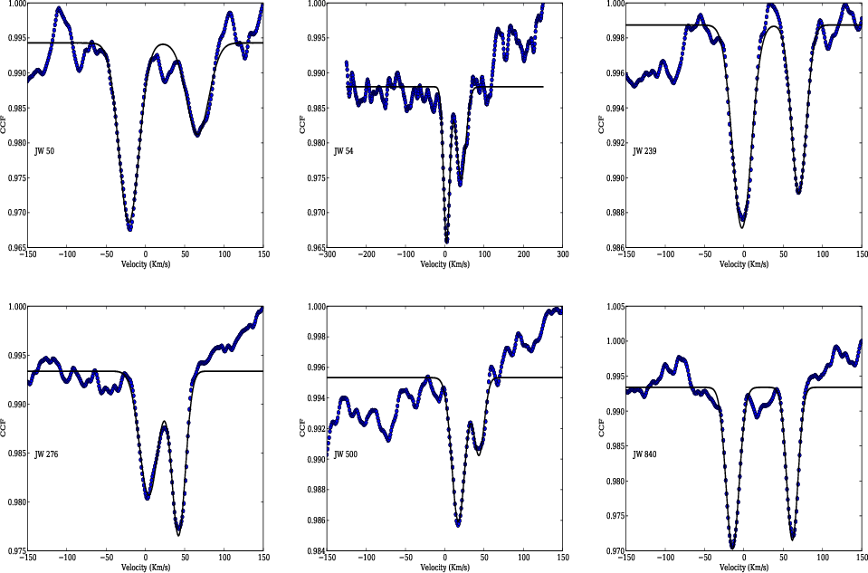 function is clearly double-lined, indicating that the stars are SB2
