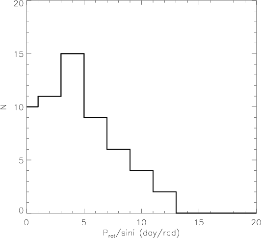 systems. The distribution of rotation periods derived from our
