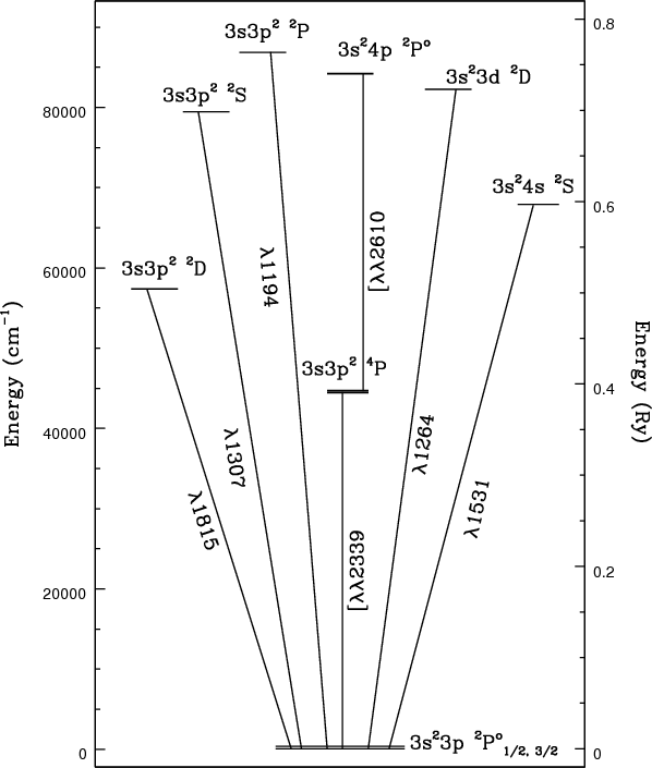 - 3s3p2 4P) have also been subject of controversy. These transitions arise due to spin-orbit mixing of the metastable term 3s3p2 4P with the 2S, 2P, and 2D terms. The difficulty then comes from the fact that the gf-values