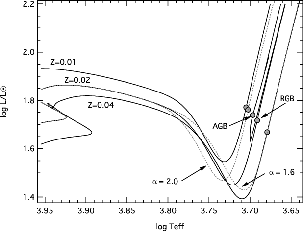 Solid lines correspond to solar-calibrated evolutionary tracks. The