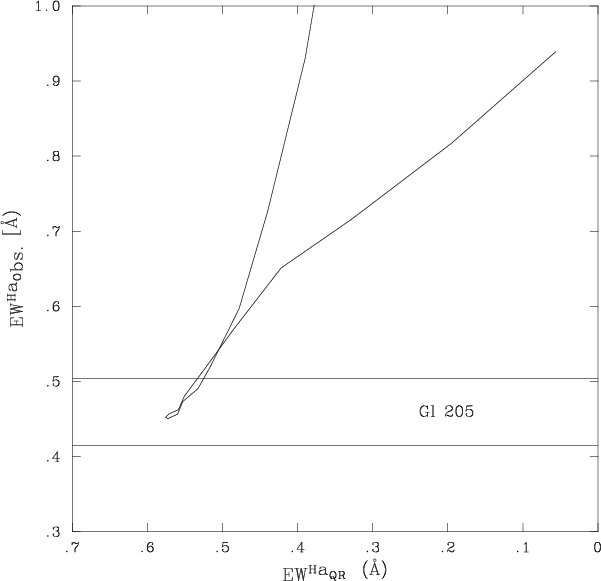 equivalent width. For Gl 205, one of the solutions is shown to be