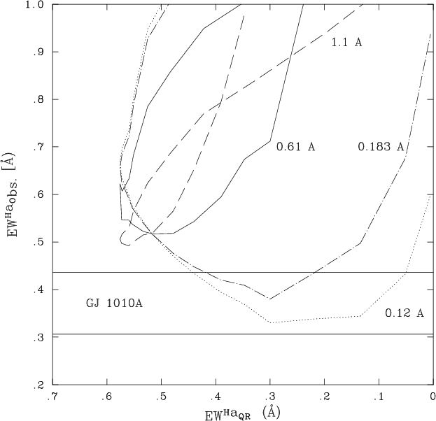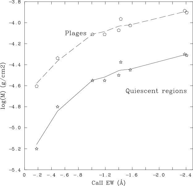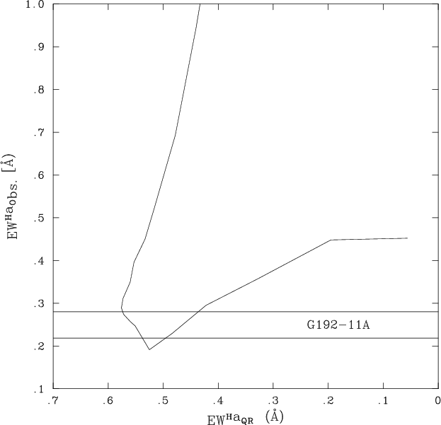 G192-11A, two solutions are possible; a low solution (low CaII EW) and a high solution (high CaII EW). The difference between these two solutions is mainly in the plage-filling factor. The two solutions give almost identical H