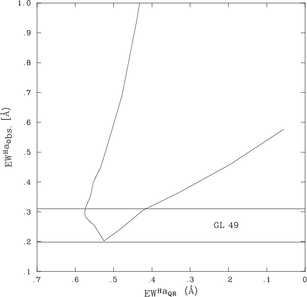 maximum absorption and emission. Two stars (Gl 49 and G192-11A) are quite active with H