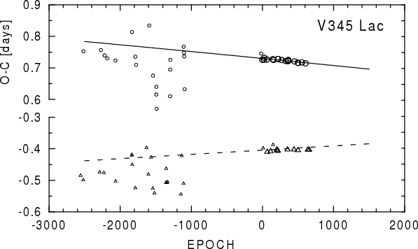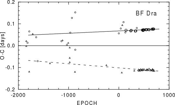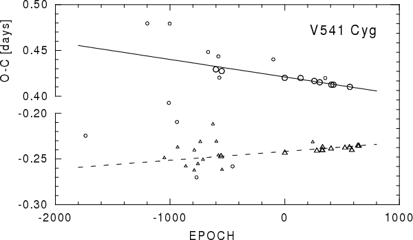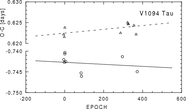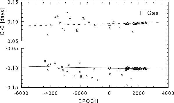 Giménez et al. (1987), and Claret (1997, 1998). Regularly updated ephemeris, based on all compiled times of minima, can be found in the database of the O-C diagrams (Kreiner