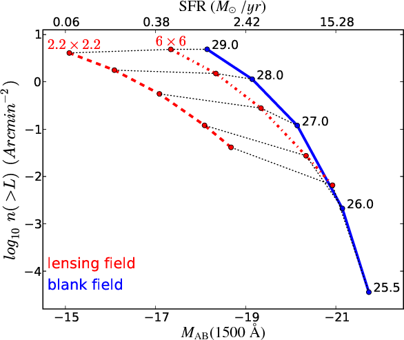 as compared to lensing fields if the UV LF for LBGs is strongly