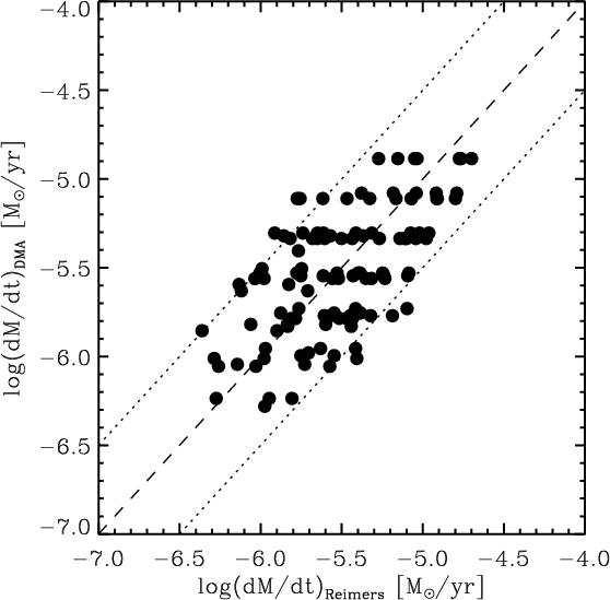 Determining the mass-loss rates observationally is complicated and riddled with many possible sources of uncertainty.Also, the fundamental stellar parameters, such as effective temperature and mass, can be hard to determine observationally with high precision, which makes it very difficult to empirically determine the mass-loss rate as a function of stellar parameters with sufficient accuracy. Empirical studies as such can only provide a limited amount of information, since one cannot easily disentangle the effects of individual stellar parameters. The reason for this is of course that stellar evolution and observed stellar parameters are connected, and we can only observe each star at one evolutionary stage. Observations can tell us about the mass loss for a given set of stellar parameters, but the exact dependences on these parameters can unfortunately not be determined easily due to selection effects. Existing empirical relations suffer from selection effects, with a very steep dependence of mass loss rates on stellar parameters.