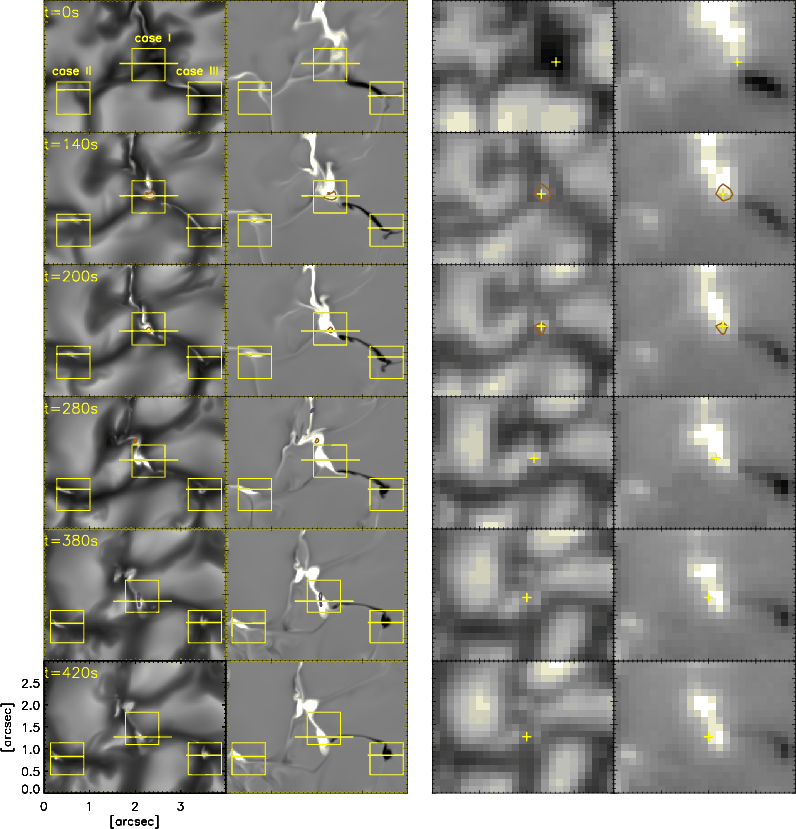 field strength and the appearance of the bright point. The magnetic