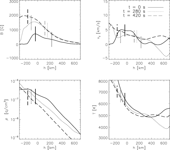 200 s after the formation of the flux concentration. The upflow