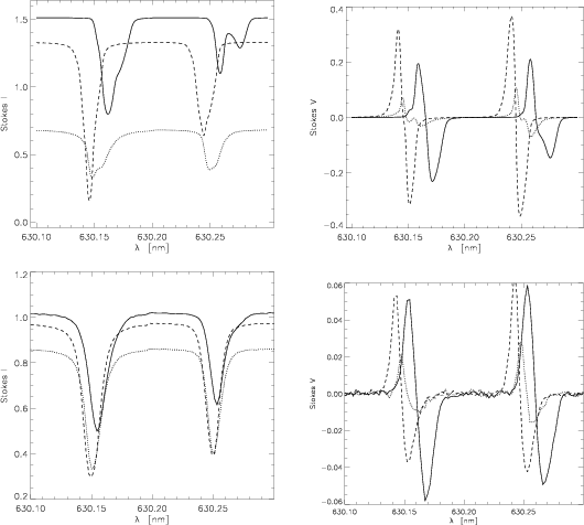 observations, we calculate Stokes profiles and take into account the