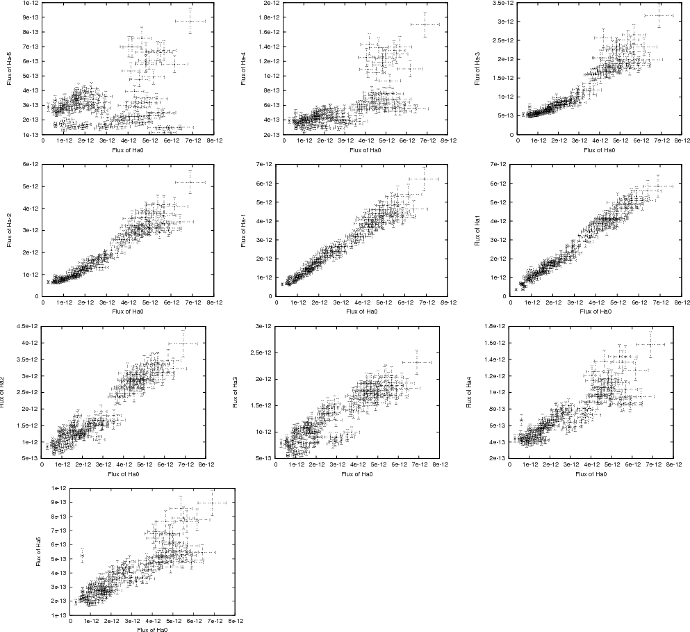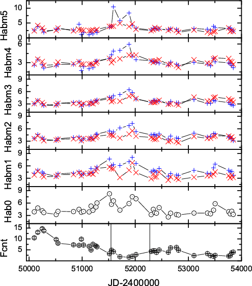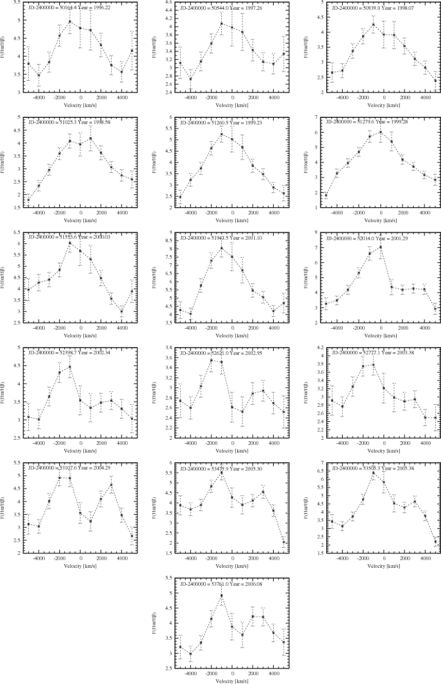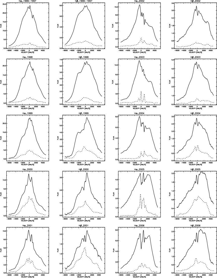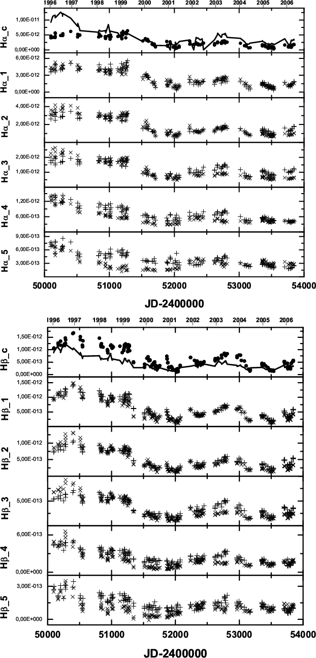 we studied different details (bumps, absorbtion features) in the line profiles. The variations in the different H