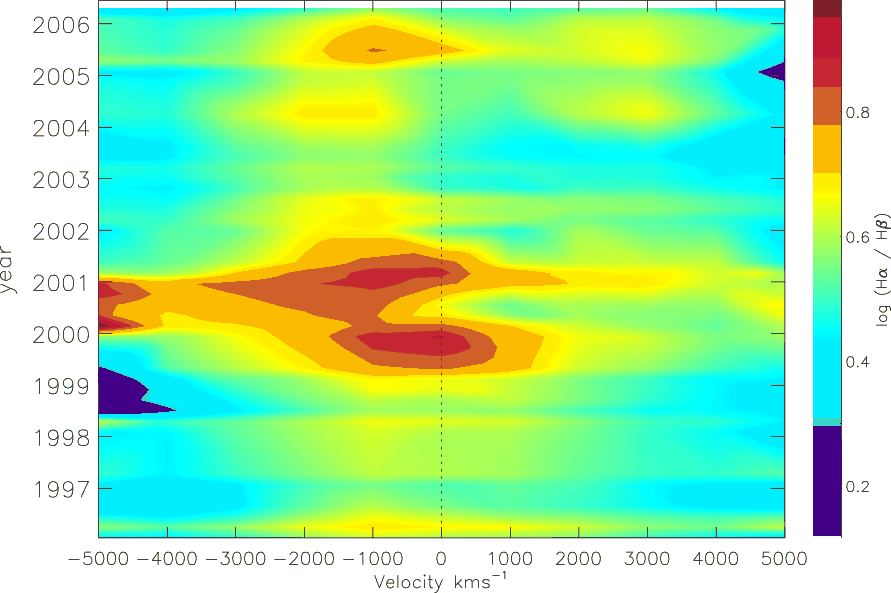 line profile segments were investigated. We also analyzed the Balmer decrement for entire lines and for line segments.