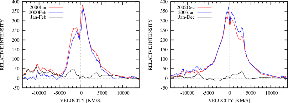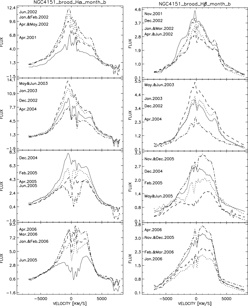 line profiles (over years, months, and Periods I-III, see Paper I)