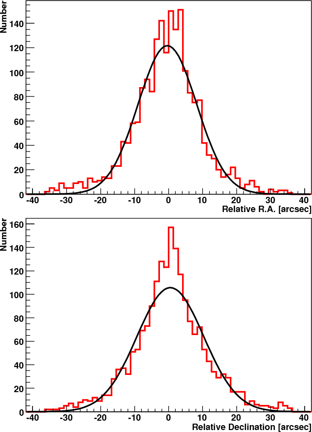 the astrometry of the telescope are of the order of 0.5 arcsec. In