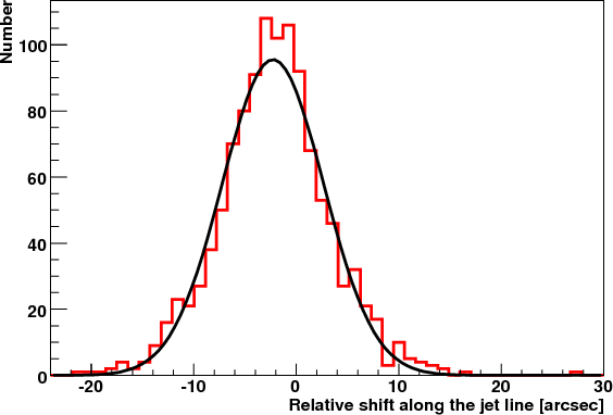 X-rays (20-40 keV) is shifted by 8.0 arcsec with respect to