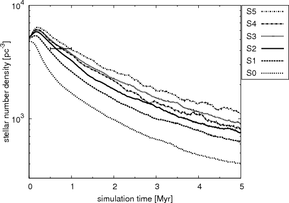 Pfalzner & Olczak (2007b). We summarise the main aspects of our model: the initial stellar population consists of 4000 members with masses of