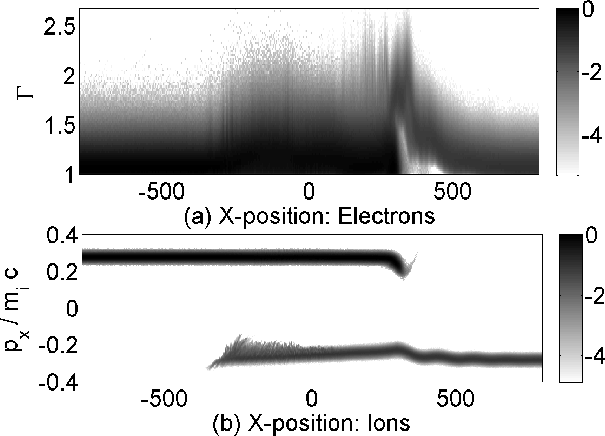 The electrons could be accelerated by plasma based charged particle accelerators (Bingham et al. 2004), by electron surfing acceleration (Dieckmann et al. 2008a; Katsouleas & Dawson 1983; Ohira & Takahara 2007), double layers (Dieckmann & Bret 2009; Raadu & Rasmussen 1988) or by processes that exploit a velocity shear in the plasma outflow (Rieger & Duffy 2006). It has, however, not yet been demonstrated with multi-dimensional and self-consistent simulations that these mechanisms can indeed achieve the required electron acceleration and magnetic field amplification. The non-relativistic shocks, which are found between the main SNR blast shell and the ambient medium, can also probably not transfer significant energy from the ions to the electrons and accelerate the latter to relativistic speeds (Hoshino & Shimada 2002; Amano & Hoshino 2007; Lembege et al. 2004; Chapman et al. 2005; Scholer & Matsukiyo 2004; Umeda et al. 2009; Sorasio et al. 2006).