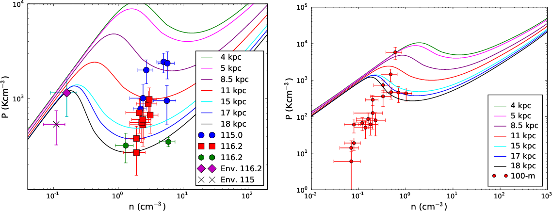 envelopes. Pressures and densities fall within the expectations from