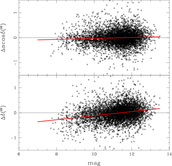 Other proper motion catalogues available at the present time are UCAC2 catalogues (Zacharias et al. 2004, 2-7 mas/yr depending on the magnitude and current version has systematic errors of the order of 3 mas/yr), NPM (Hanson et al. 2004, 5 mas/yr, 8 < B < 18) and SPM (Girard et al. 2004, 4 mas/yr, 5 < V < 18.5). For an overview in detail of the current astrometric catalogues, see Girard (2008).