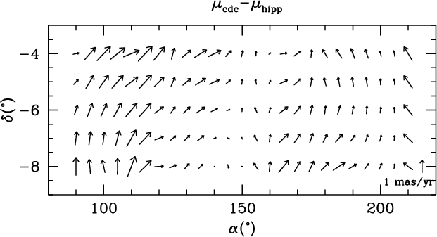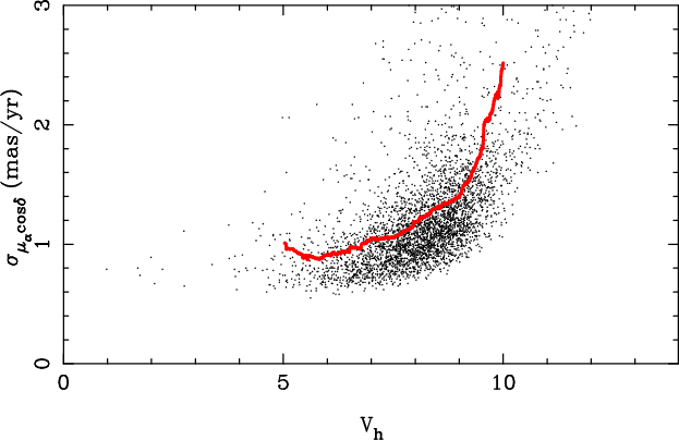 with errors of 2.5 mas/year. At the present time the Hipparcos and