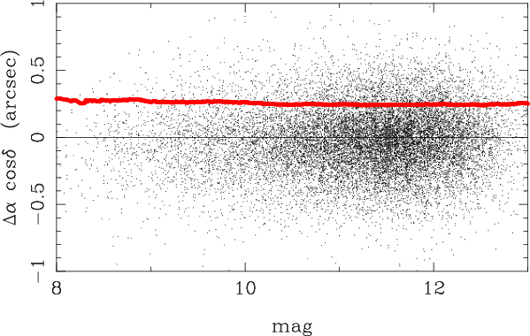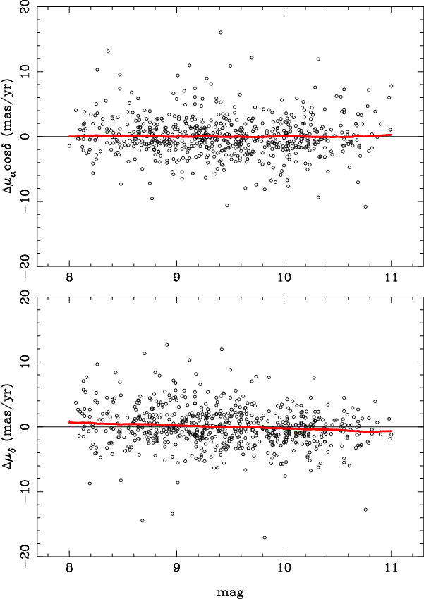 and in proper motions it is 2 mas/yr (1.1 mas/yr for well-measured stars).