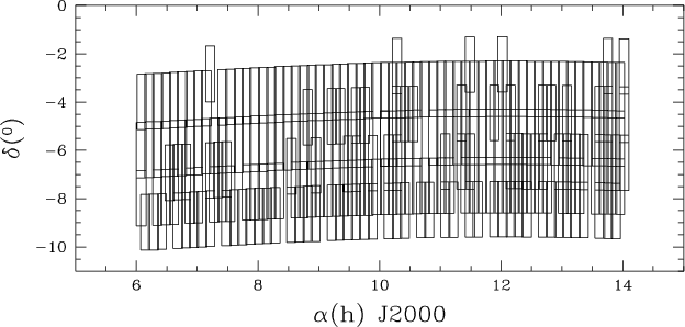 The CdC-SF sky coverage is illustrated in Fig. 12. The gaps correspond to plates that had problems during the reduction or that were not included because of their poor quality and would have adversely affected neighbouring fields in the catalogue. The contents of the CdC-SF Catalogue is given in Table 6, and a summary of its main characteristics is described in Table 5.