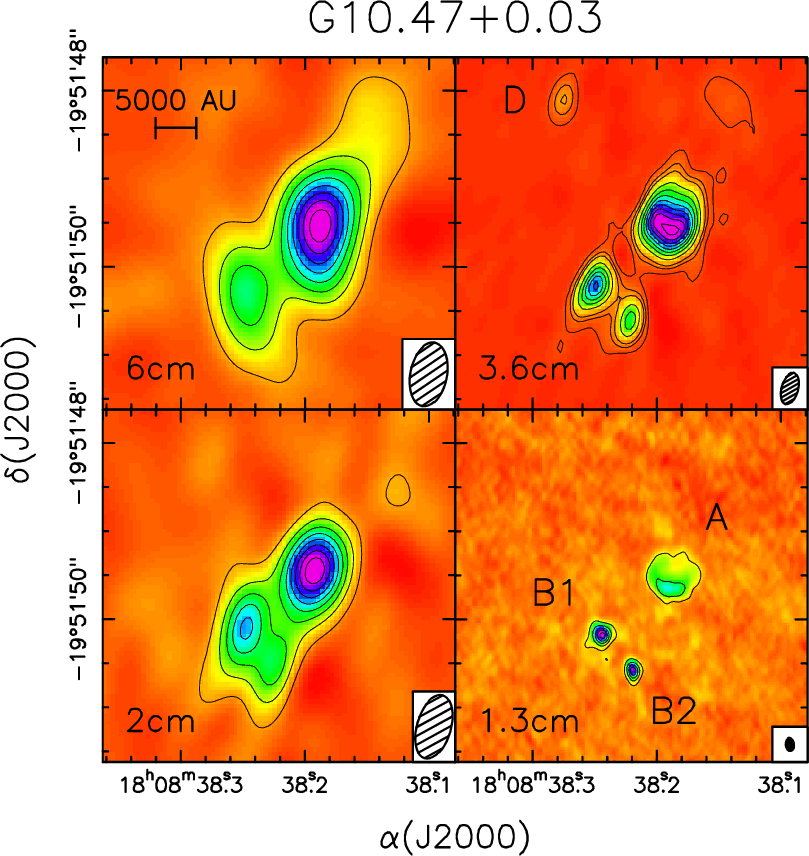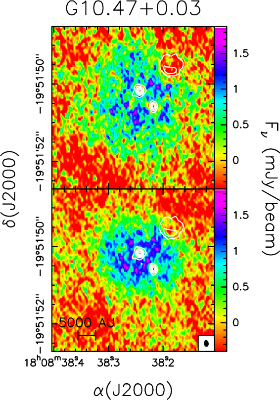 (proto)stars is provided for both G10.47+0.03 and G31.41+0.31, while in