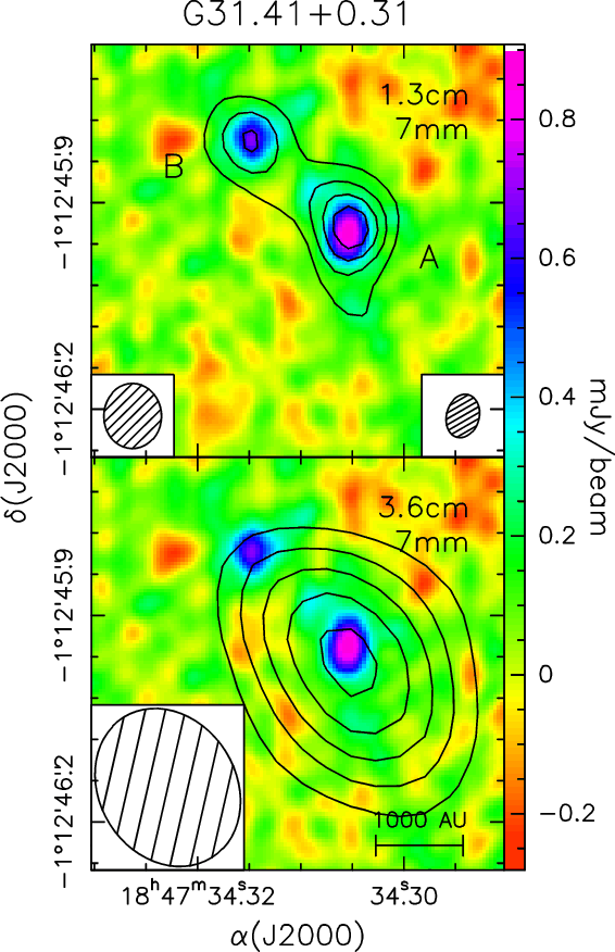 Results. We detected two new continuum sources in G31.41+0.31,
